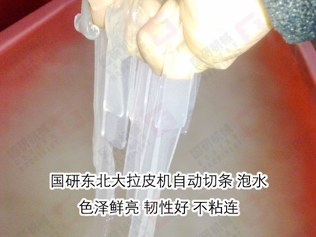 5、該機生產的拉皮、粉皮厚薄可任意調節,保全了原料的全部營養成份,味道鮮美,清亮剔透。