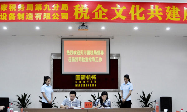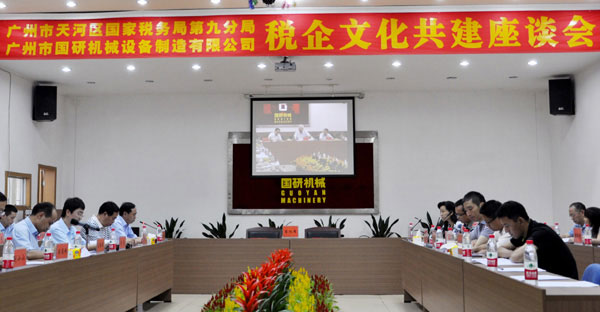 5月28日下午,廣州市天河國稅進出口稅收管理科、天河國稅第九分局和廣州市國研機械設備制造有限公司“稅企文化共建座談會”在國研機械大會議室隆重召開。天河國稅區(qū)局領導黃捷洪紀檢組長、賴建華總經濟師和區(qū)局相關科室、進出口稅收管理科、九分局等領導出席了此次座談會。