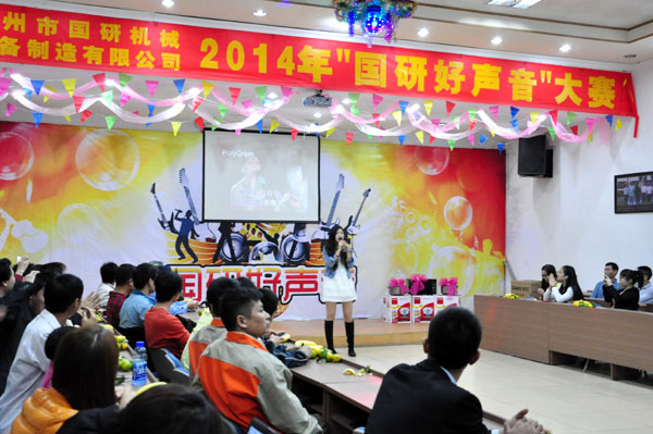 11月17日晚,在廣州市國研機械設備制造有限公司的多功能會議廳洋溢著一派節日的氣氛,員工們個個興高采烈一掃往日的疲憊,大家期待已久的“國研好聲音”決賽正在如火如荼地緊張進行著。選手們的精彩演唱高潮迭起,讓賽場上的掌聲雷動。那些平時默默無語工作在生產一線的員工在比賽中都展示了他們積極向上樂觀進取的生活態度,迸發出了精彩的演出。選手們經過2個多小時的激烈角逐,評委根據各個選手的音準、音色、音調等多項的綜合因素公平打分,評選出大賽的各個獎項。