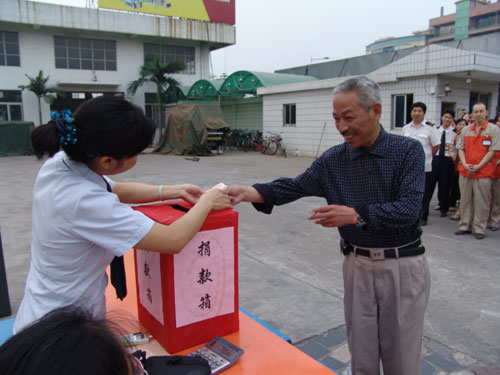 5月17日下午17時,廣州市國硯實業發展有限公司、廣州市國研機械設備制造有限公司在公司總部舉行了為四川地震災區獻愛心的捐款活動。公司近100名干部員工積極踴躍地為災區人民進行了募捐。