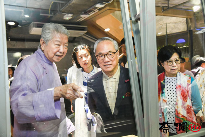 蔡瀾先生給前特首曾蔭權及到場嘉賓介紹國研河粉制作越南粉的過程。