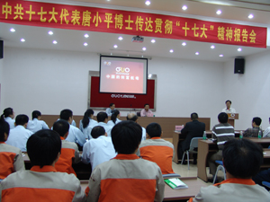 支部書(shū)記王聲躍同志向全體員工傳達(dá)了公司黨支部認(rèn)真學(xué)習(xí)貫徹黨的十七大精神的決定,指出要制定學(xué)習(xí)計(jì)劃,充分利用各種途徑和載體,積極開(kāi)展學(xué)習(xí)、研討、宣講等活動(dòng),寫(xiě)出心得體會(huì),在全公司掀起學(xué)習(xí)貫徹黨的十七大精神的高潮。