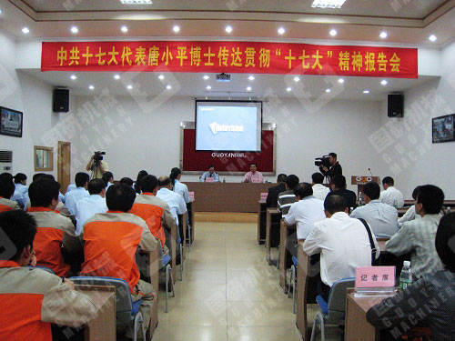 11月14日下午,陽光燦爛,秋風送爽,在喜慶的鑼鼓和歡聲笑語中,座落于廣州市天河區珠吉街的廣州市國研機械設備制造有限公司迎來了黨的十七大代表唐小平博士。唐小平代表面對國研公司黨支部全體黨員和公司全體員工,作了一場豐富詳實、精彩生動的報告。珠吉街黨工委、辦事處領導班子成員、街屬各支部書記、以及天河區委組織部、區委宣傳部的有關負責同志應邀出席了報告會。