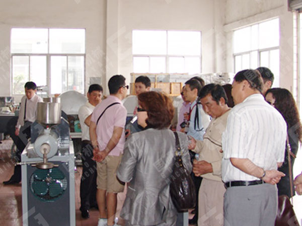 蒙古國工商會代表團一行參觀考察了該公司的產品展廳,生產車間,辦公環境。并召開了座談會,該公司銷售部經理陳樹學、市場部經理劉啟剛就公司經營理念、企業文化、產品品質、服務方式等情況分別向客人作了詳細介紹。代表團一行對國研機械的塑料編織袋生產線、高檔紙袋生產線、塑料吹膜、制袋、印刷生產線、面條生產線、餅干生產線、河粉機組、榨油機組等設備十分感興趣,8名客人談到了合作意向。最后桑﹒登貝爾勒會長深有感觸的說:“今天我們代表團參觀考察了廣州市國研機械設備制造有限公司,感慨萬分,近些年中國制造業的飛速發展,舉世矚目,國研機械是中國機械制造業發展的縮影,公司經營理念、企業文化、產品品質、一站式服務都讓我們感興趣,回國后,我們將在工商會進行推介,爭取早日與廣州國研機械合作”。