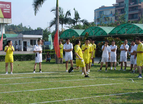 國研機械全體員工在公司舉辦的運動會上參加接力比賽